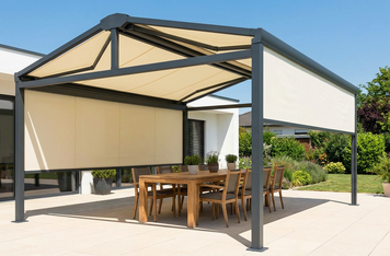 Ламельные биоклиматические крыши позволяют регулировать свет и вентиляцию, полностью закрываясь от дождя и снега. Поликарбонат и стекло пропускают больше света и визуально «облегчают» конструкцию, но могут сильнее нагревать пространство в жару, поэтому их часто сочетают с вертикальными солнцезащитными системами. Деревянные двускатные перголы выглядят очень тепло и естественно, но нуждаются в регулярной обработке от влаги и солнца и обычно уступают алюминию по ресурсу в уличных условиях.
